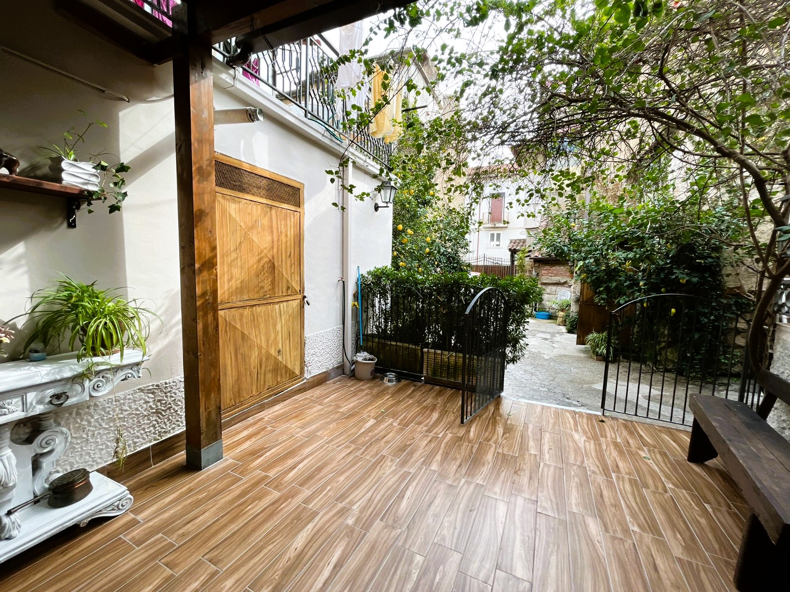 In esclusiva – Soluzione indipendente su tre livelli in zona centrale. Proponiamo in esclusiva la vendita di una splendida soluzione indipendente di 223 mq interni complessivi, attualmente distribuiti su tre livelli fuori terra. Piano terra (totalmente ristrutturato) di circa 80 mq interni è attualmente così distribuito: salone living con cucina dotata di camino a legna, antibagno e bagno. Primo piano attualmente distribuito in due camere da letto, bagno e terrazzo al piano. Secondo piano (mansardato) attualmente distribuito in cucina, due camere da letto, bagno con doccia e piccola balconata. L’immobile gode di un’area cortilizia di esclusiva proprietà ed in essa è presente un patio ed un ripostiglio. L’immobile è dotato di impianto di climatizzazione, infissi in vetrocamera e pvc, impianto termo idraulico indipendente, camino a legna, zanzariere.